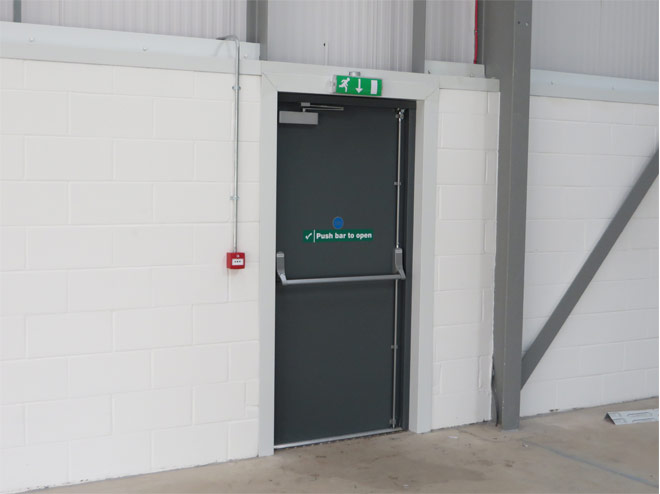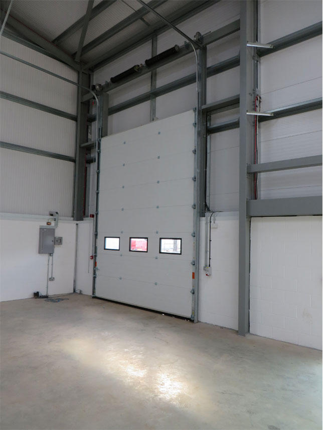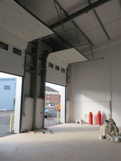Installing new sectional overhead doors and steel hinged doorsets for a new development